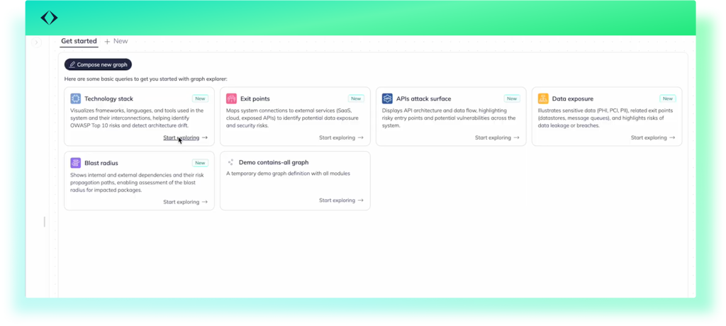 Designed to reflect common security review workflows, the Software Graph comes ready with a set of predefined built-in questions. Each question presents a tailored graph view that focuses on relevant node types, edges, and properties, reducing noise and making the graph easier to interpret and act on.