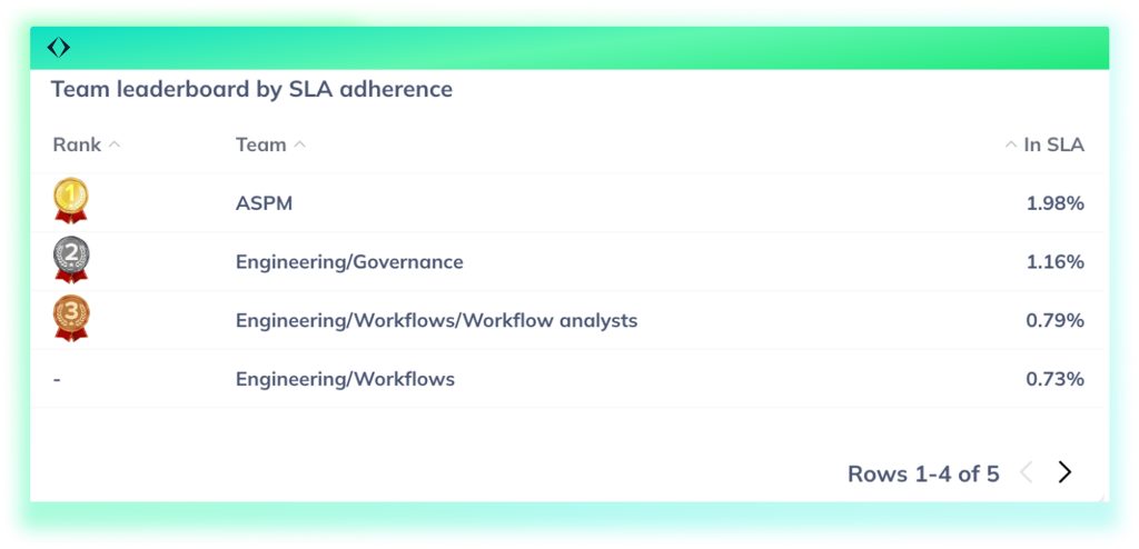 Effective risk remediation relies on being deeply integrated into development sprints, release schedules, and operational workflows to avoid becoming a bottleneck. The Leaderboard ensures security efforts are fully aligned with these processes by providing real-time visibility into risk mitigation progress alongside development timelines. Teams can embed risk reduction into their daily tasks, prioritize vulnerabilities within the context of active projects, and track their performance without disrupting productivity. With a quick glance, teams can identify outstanding risks, meet SLA requirements, and effectively communicate progress to stakeholders.