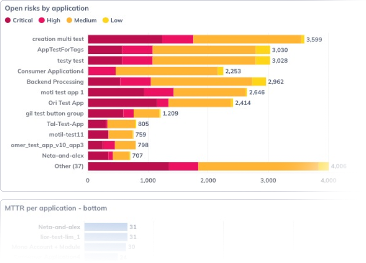 Track the time it takes to remediate risks by type and severity and understand the average age of open risks across your application attack surface.