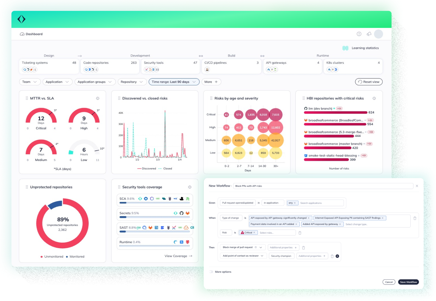 - Build risk-based policies and automated workflows to embed guardrails into pull requests and CI/CD builds and trigger remediations and manual security processes.